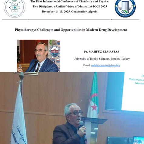 - 14–15 Aralık 2025: Constantine-1 Üniversitesi ev sahipliğinde düzenlenen 1st ICCP 2025’te Merkez Müdürümüz Prof. Dr. Mahfuz Elmastaş davetli konuşmacı olarak “Phytotherapy: Challenges and Opportunities in Modern Drug Development” başlıklı sunumuyla yer almıştır.