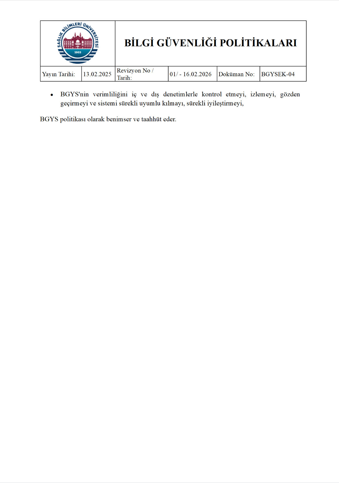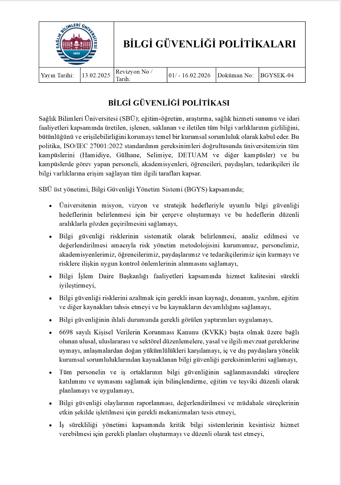 Bilgi Güvenliği Politikası